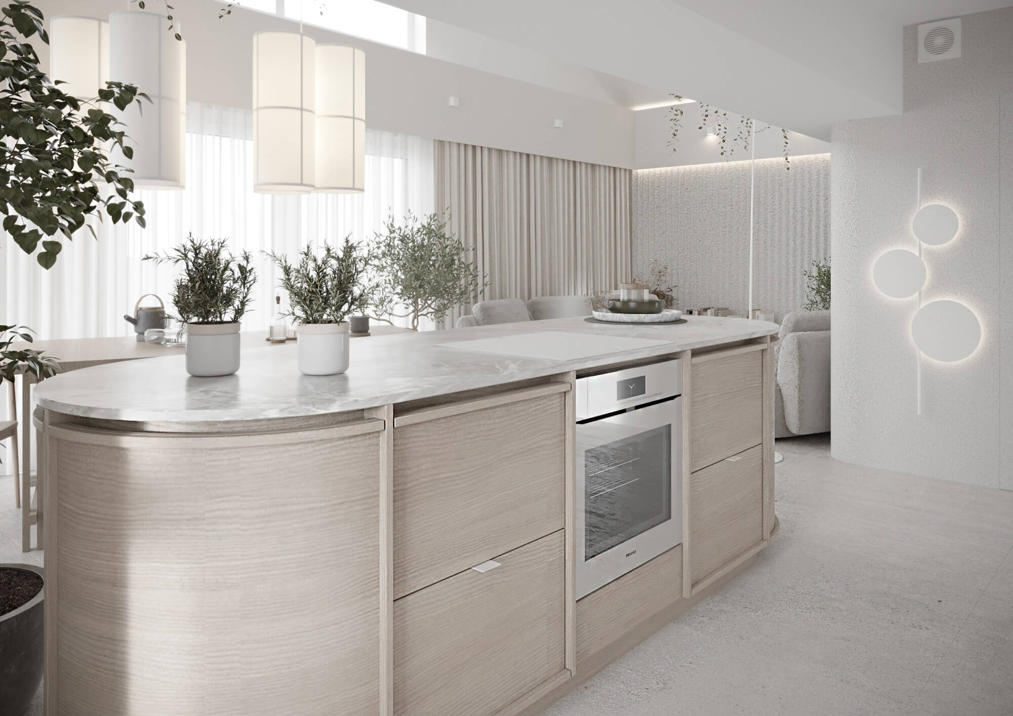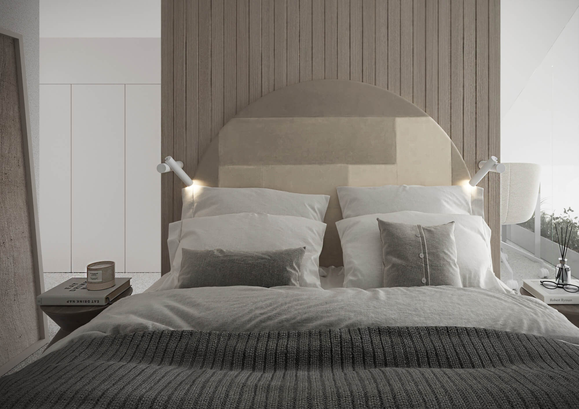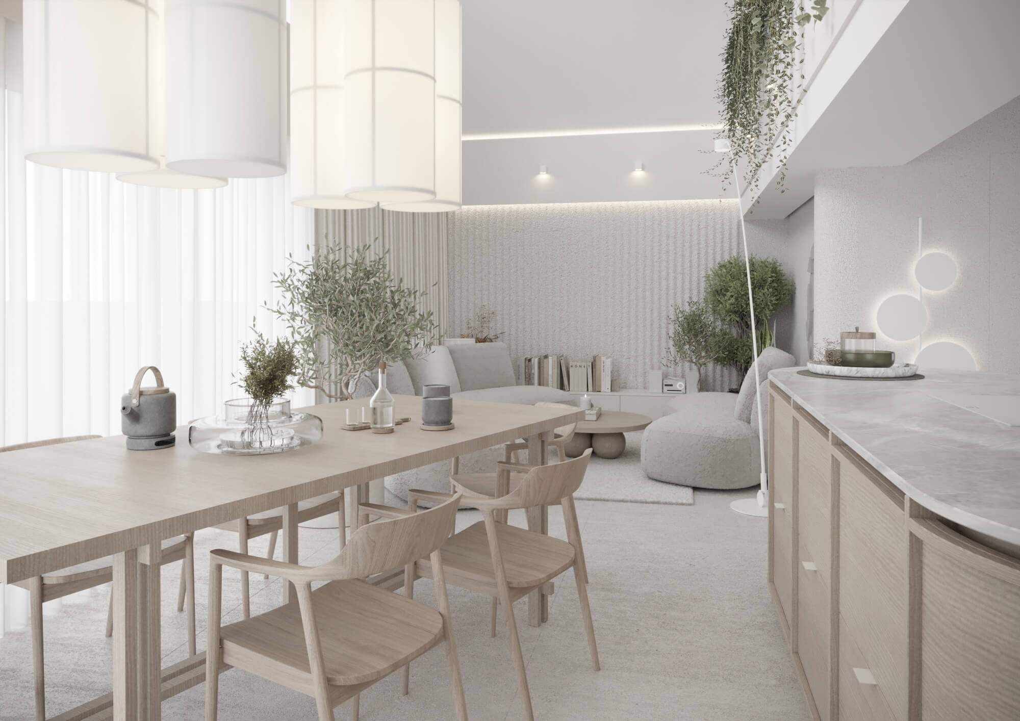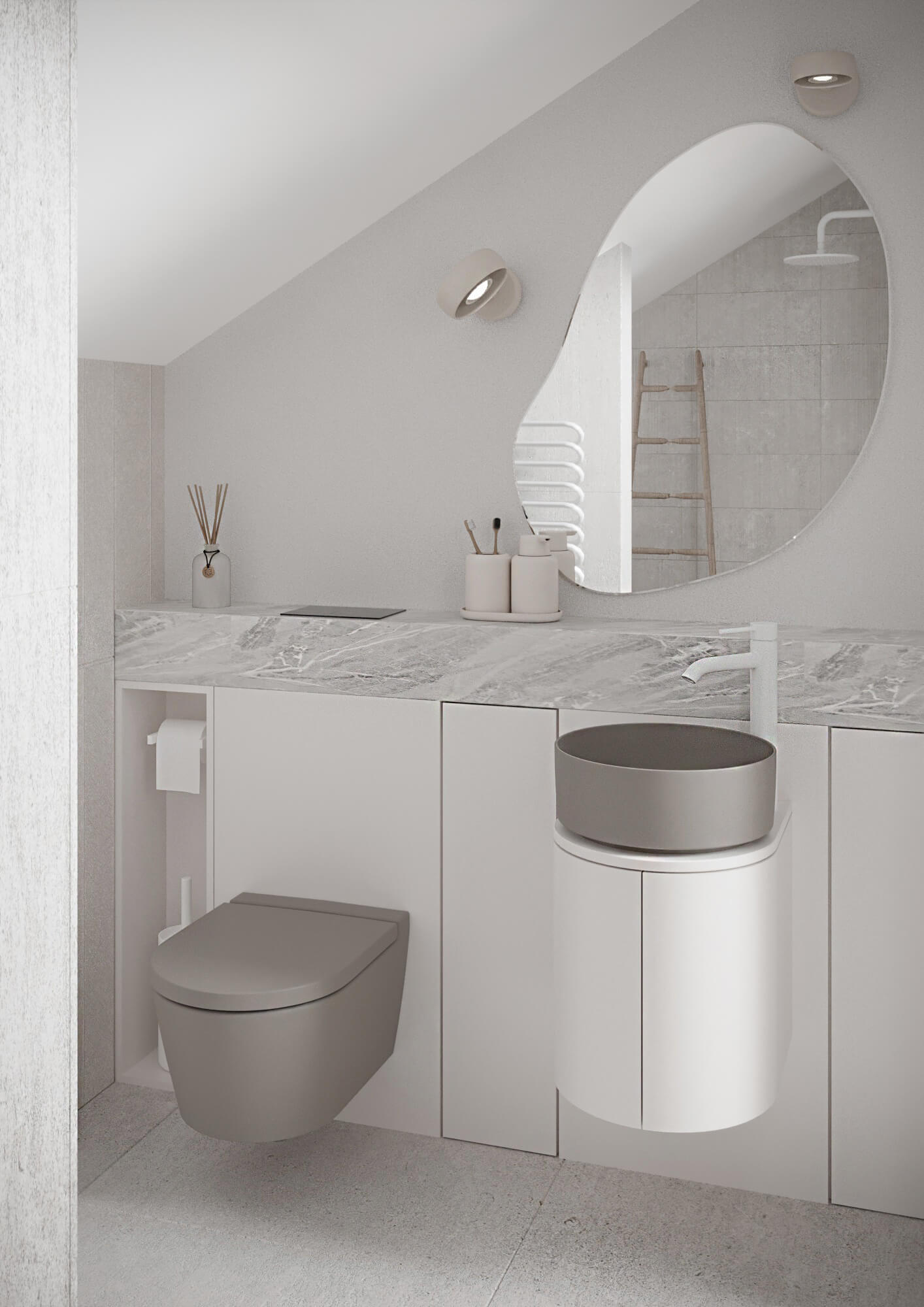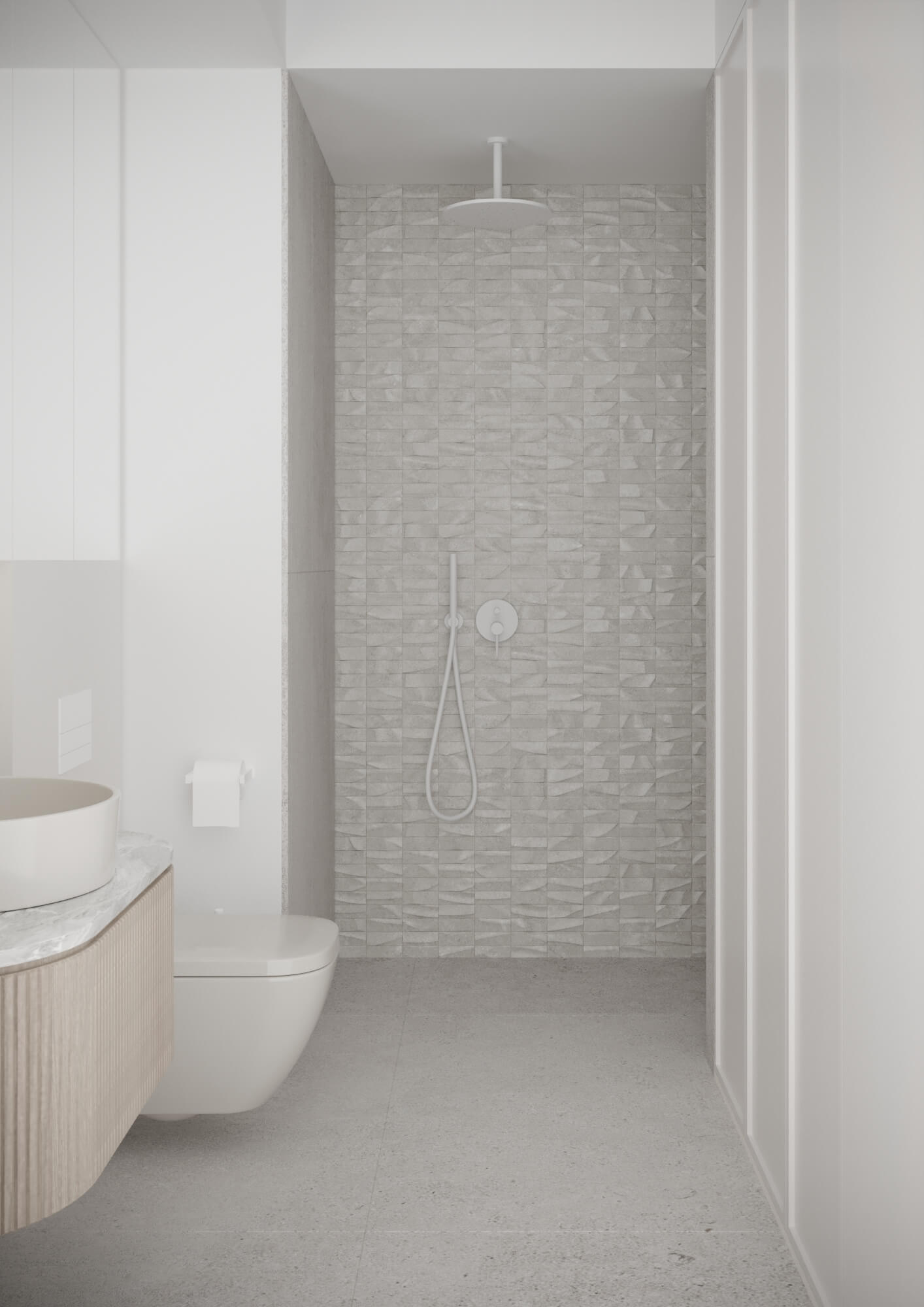 Projekt dwukondygnacyjnego apartamentu zlokalizowanego w podmiejskiej willi wielorodzinnej. Faktury materiałów i okładzin ścian, delikatne linie i naturalna kolorystyka nawiązuje do spokojnego, zielonego, leśnego widoku za panoramicznymi oknami.