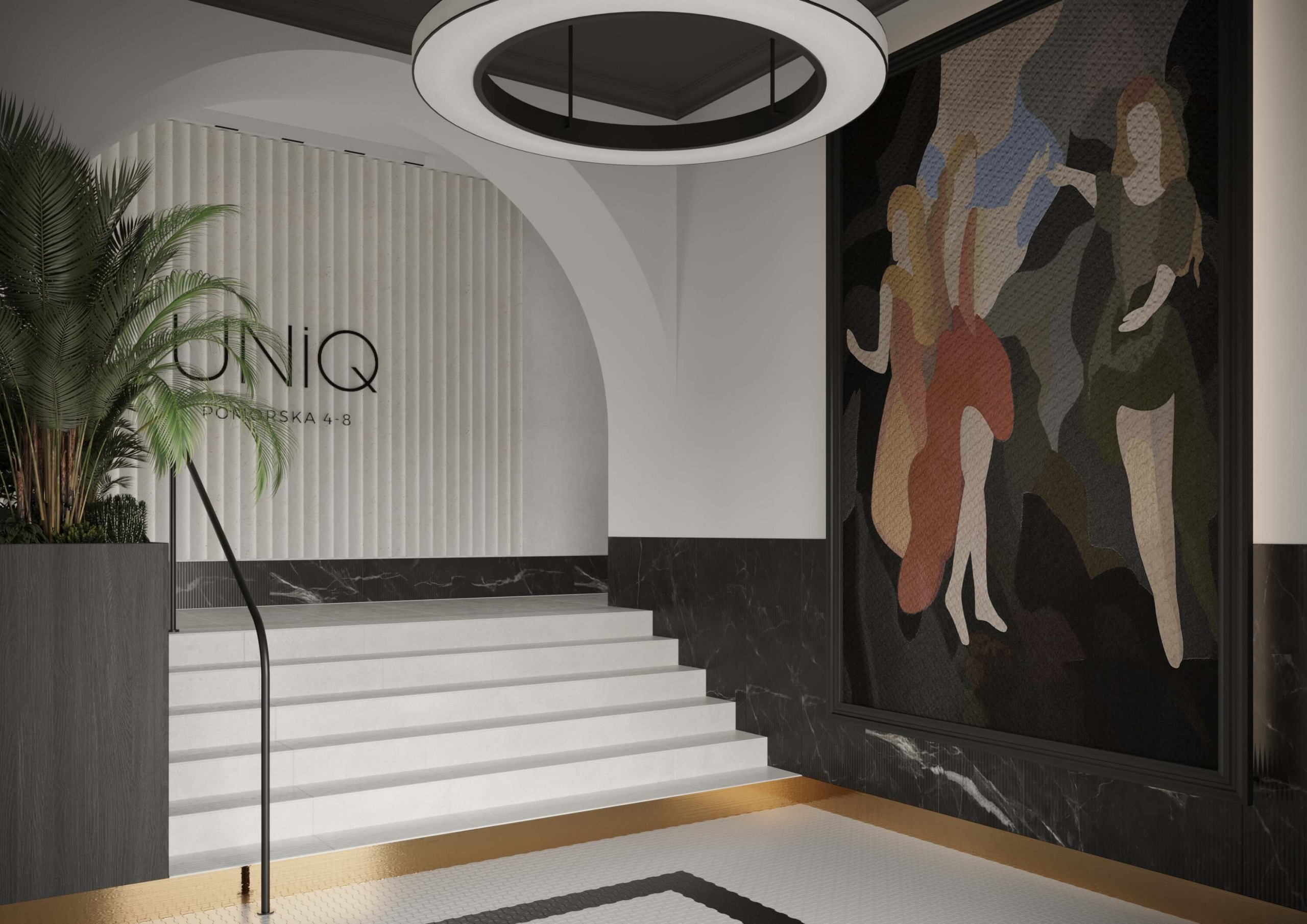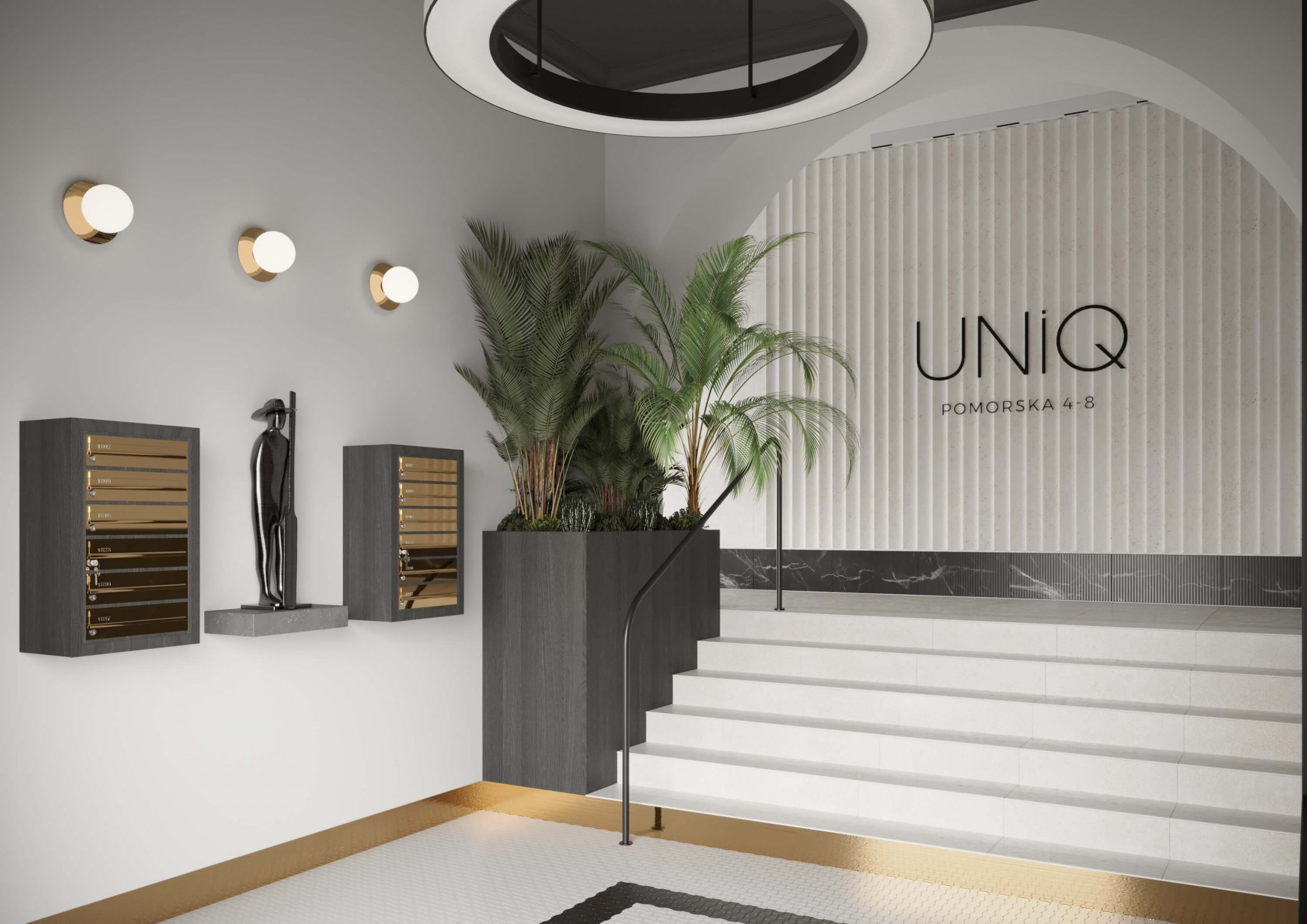 Projekt części wspólnych w wyjątkowej inwestycji deweloperskiej w ścisłym centrum Bydgoszczy, łączącej istniejącą substancję z nowoprojektowaną architekturą.