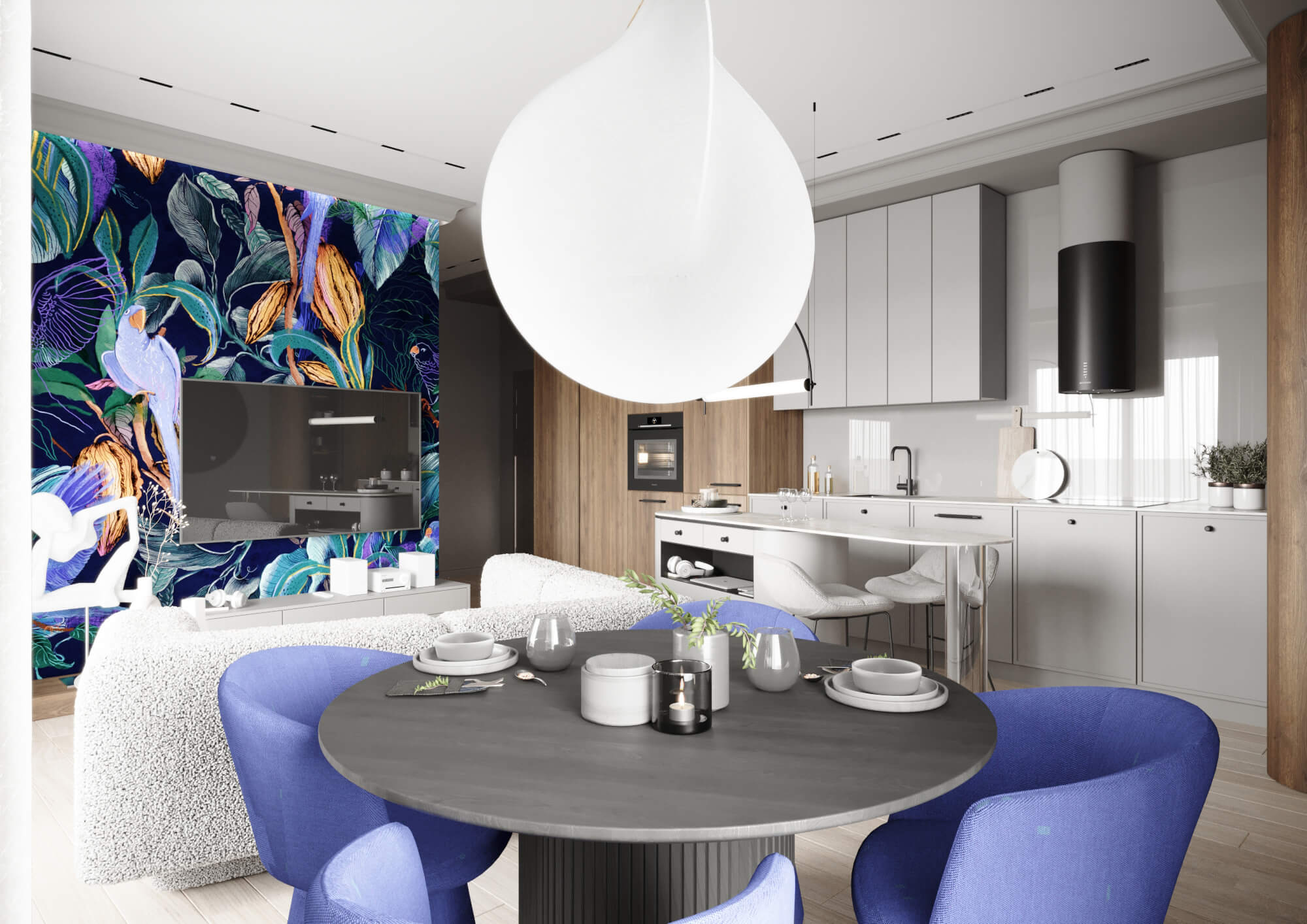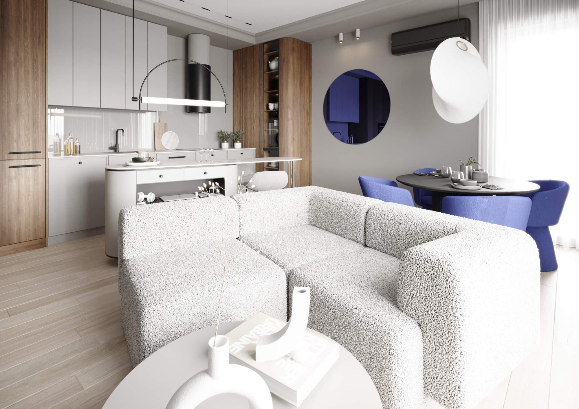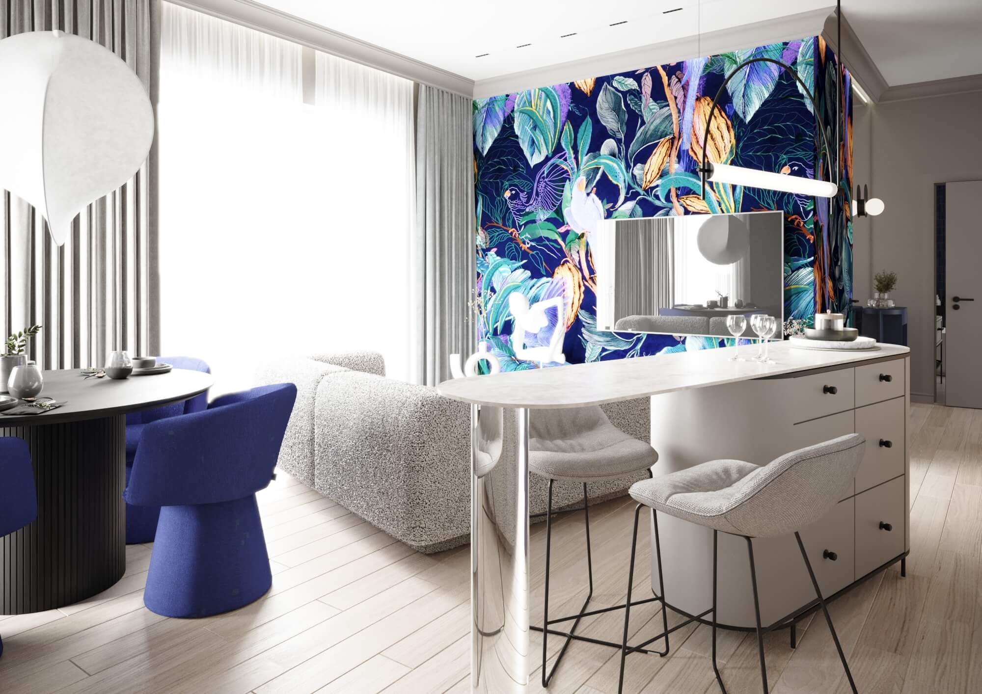 Projekt mieszkania deweloperskiego w stale rozwijającej się części miasta. Podstawowym założeniem projektu było stworzenie awangardowej i spójnej przestrzeni z wykorzystaniem dominanty kolorystycznej.