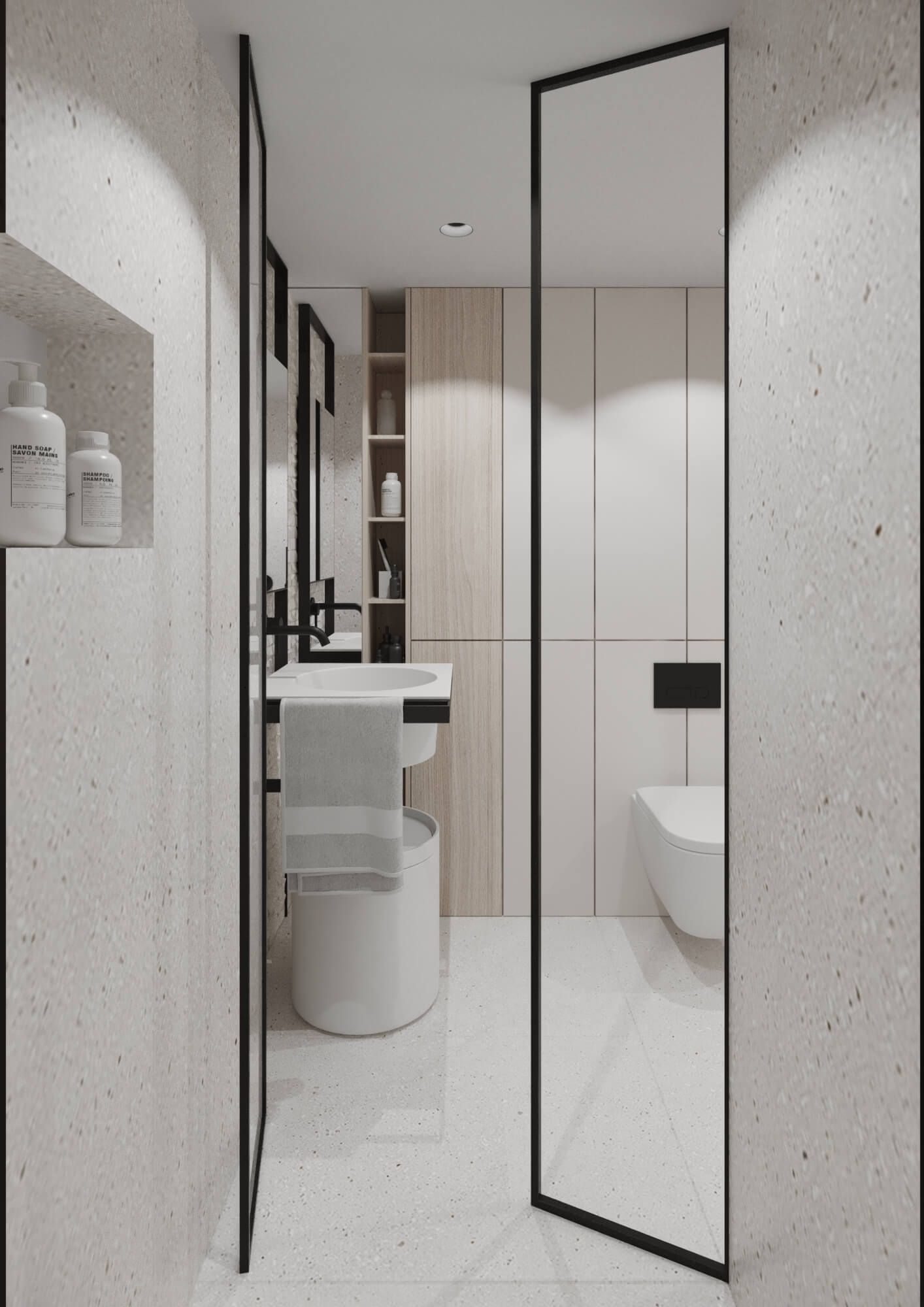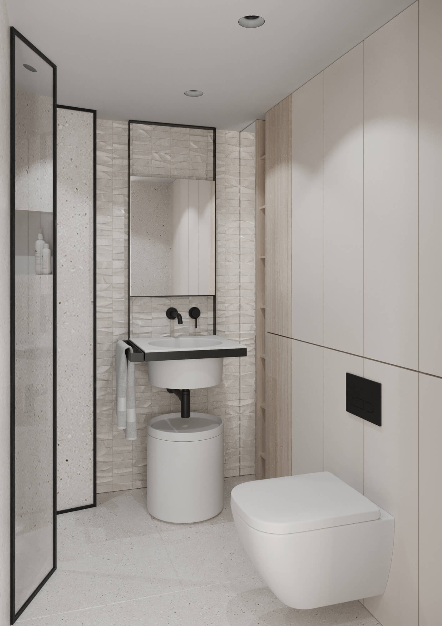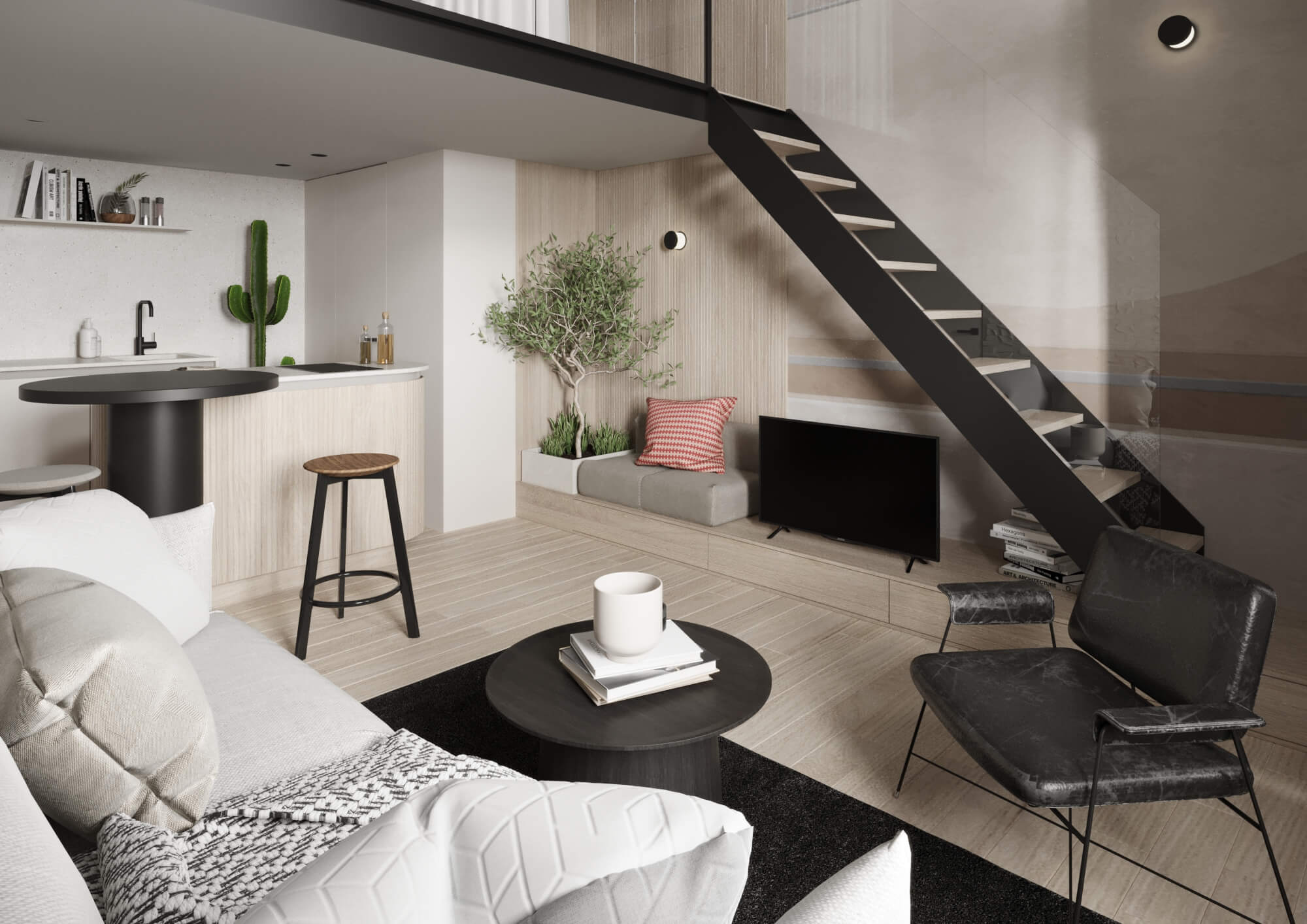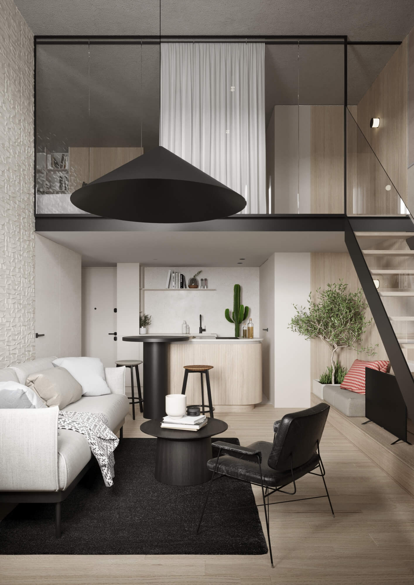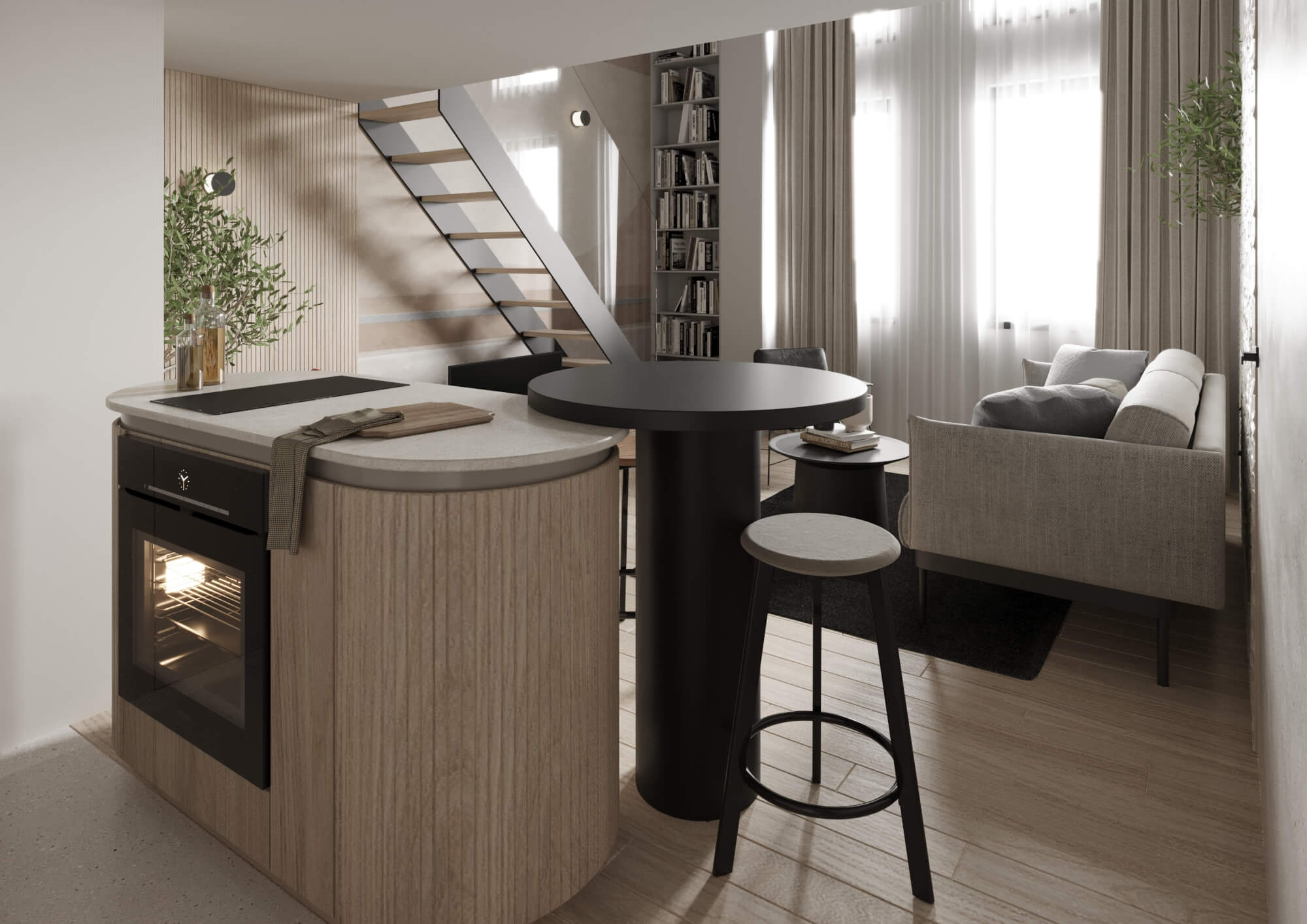 Projekt mieszkania pokazowego w historycznej części inwestycji deweloperskiej w ścisłym centrum Bydgoszczy.
