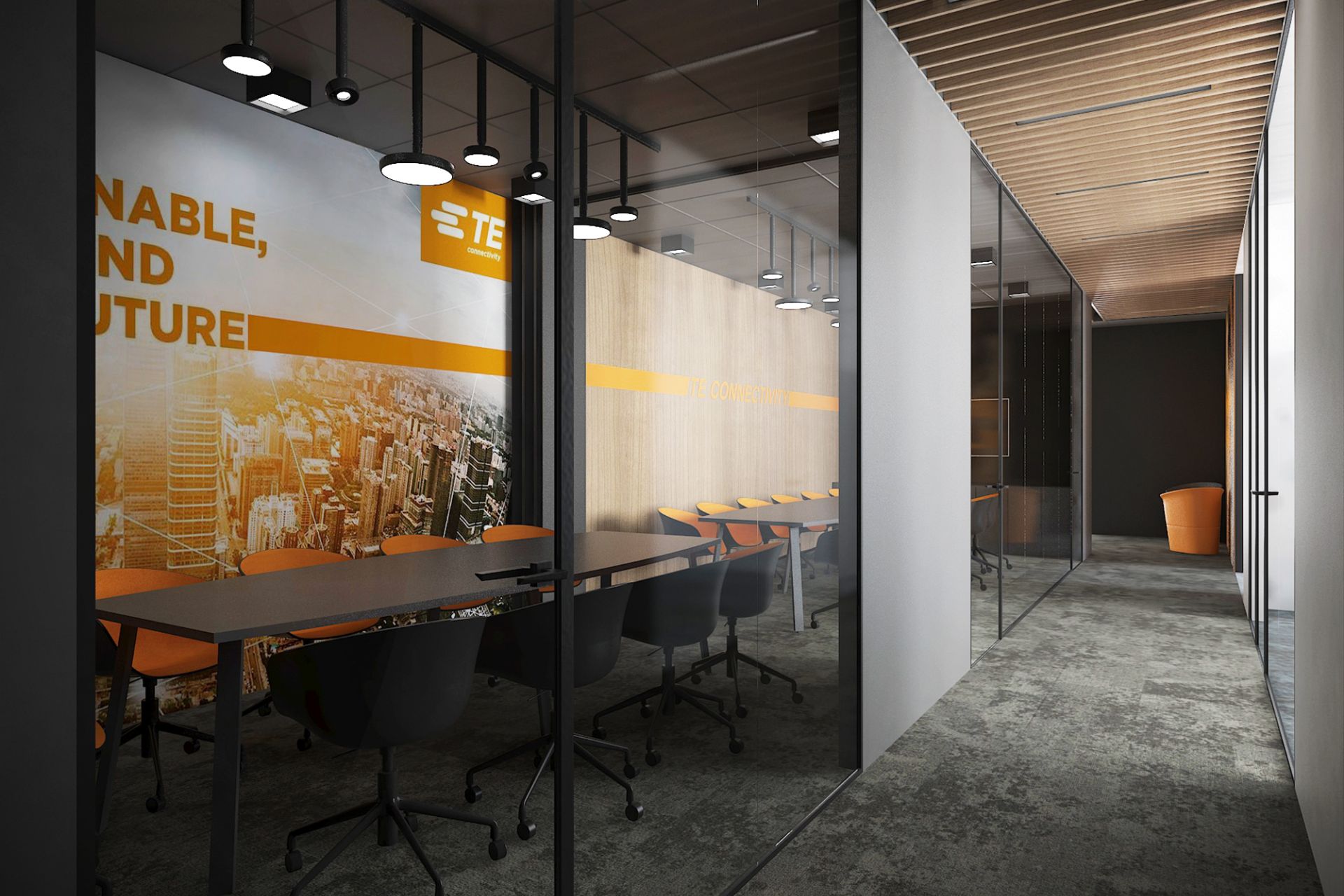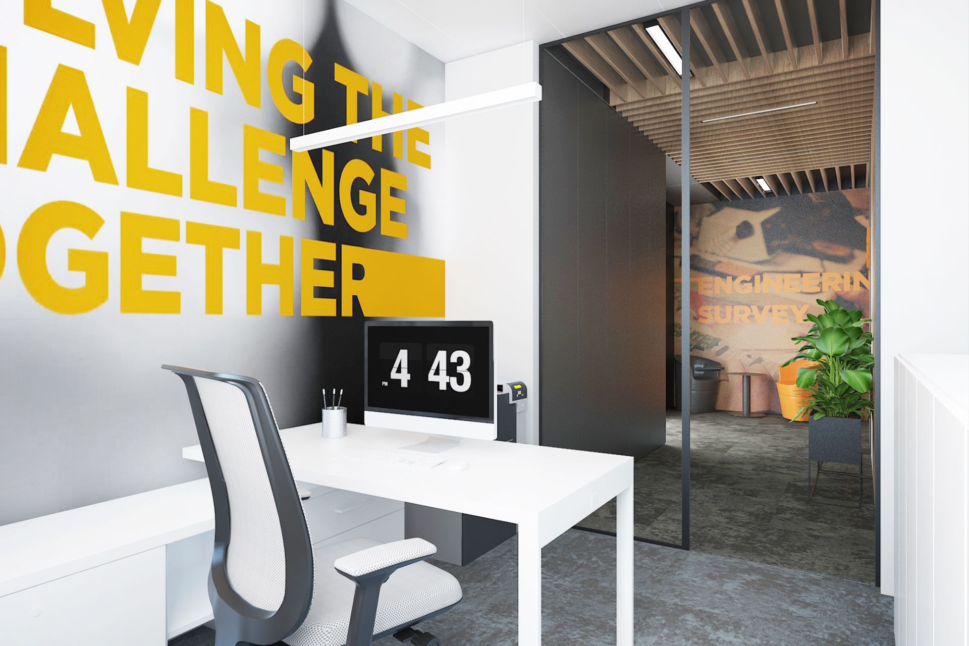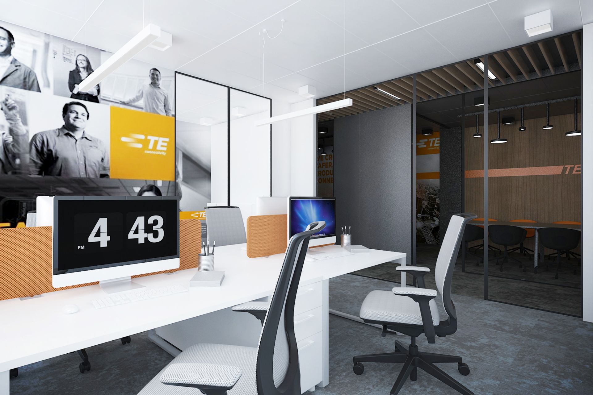 Projekt przestrzeni biurowej zarządu amerykańskiej firmy technologicznej współpracującej z wieloma branżami – motoryzacyjną, przemysłową, medyczną, lotniczą czy energetyczną.