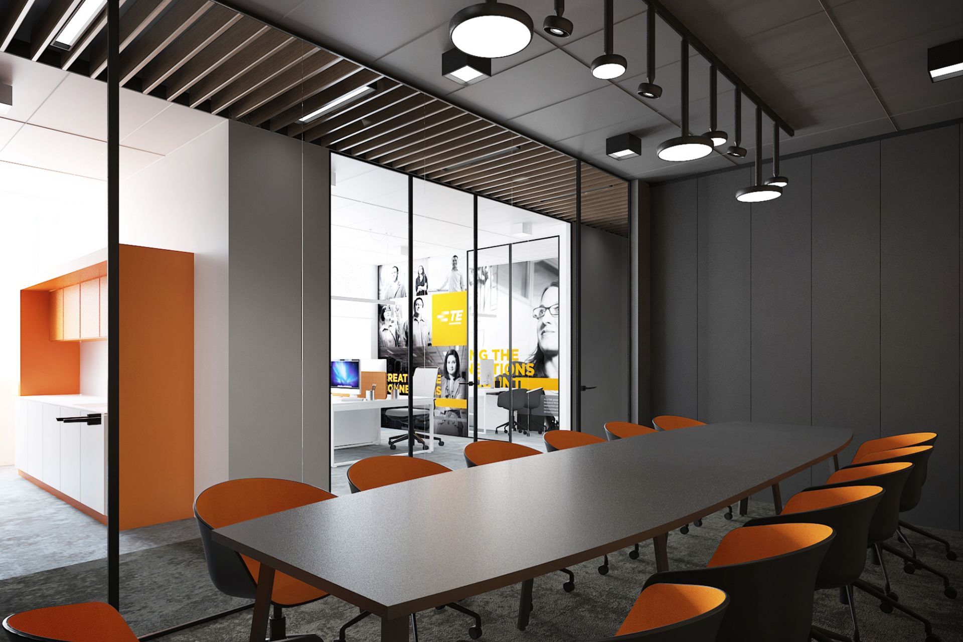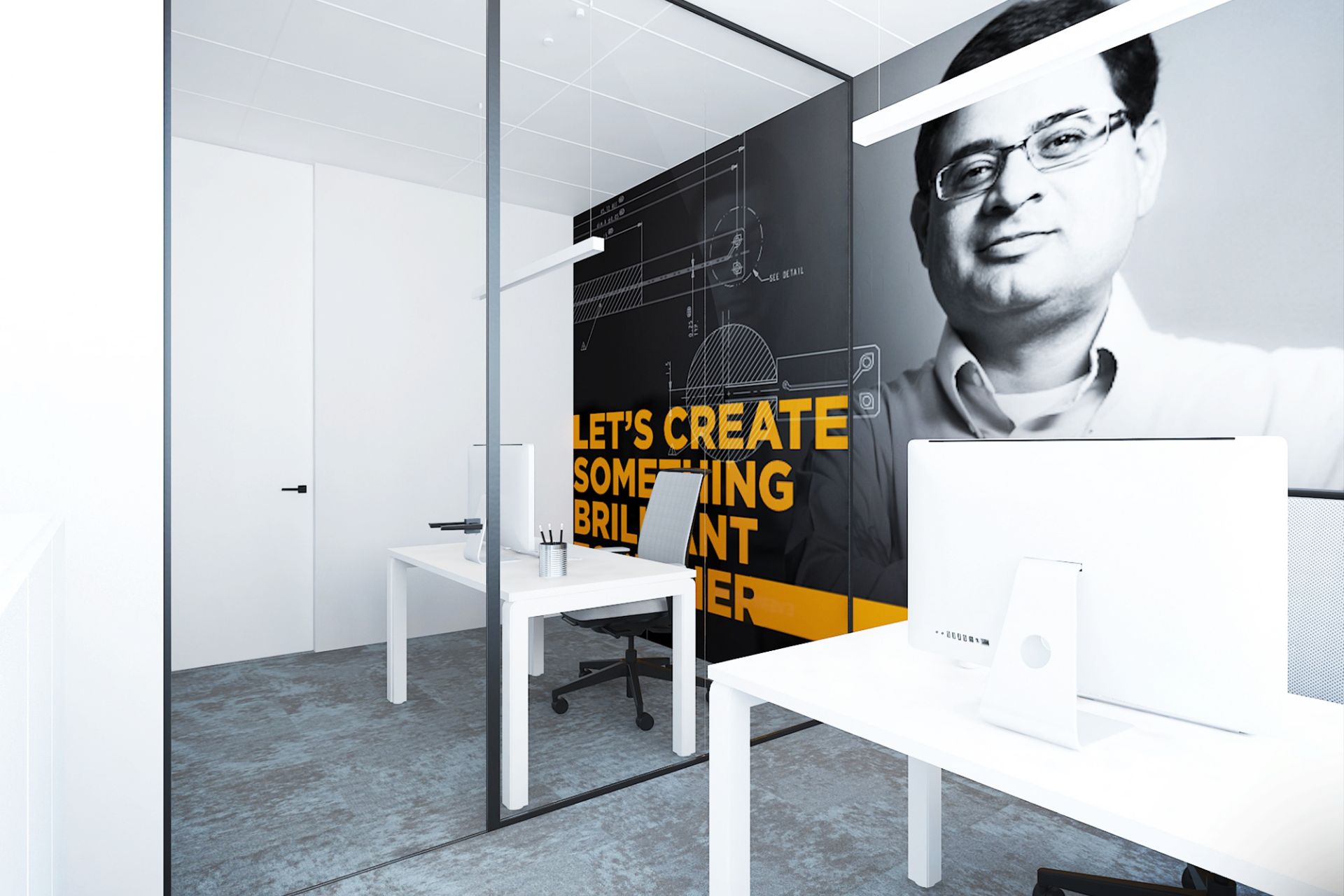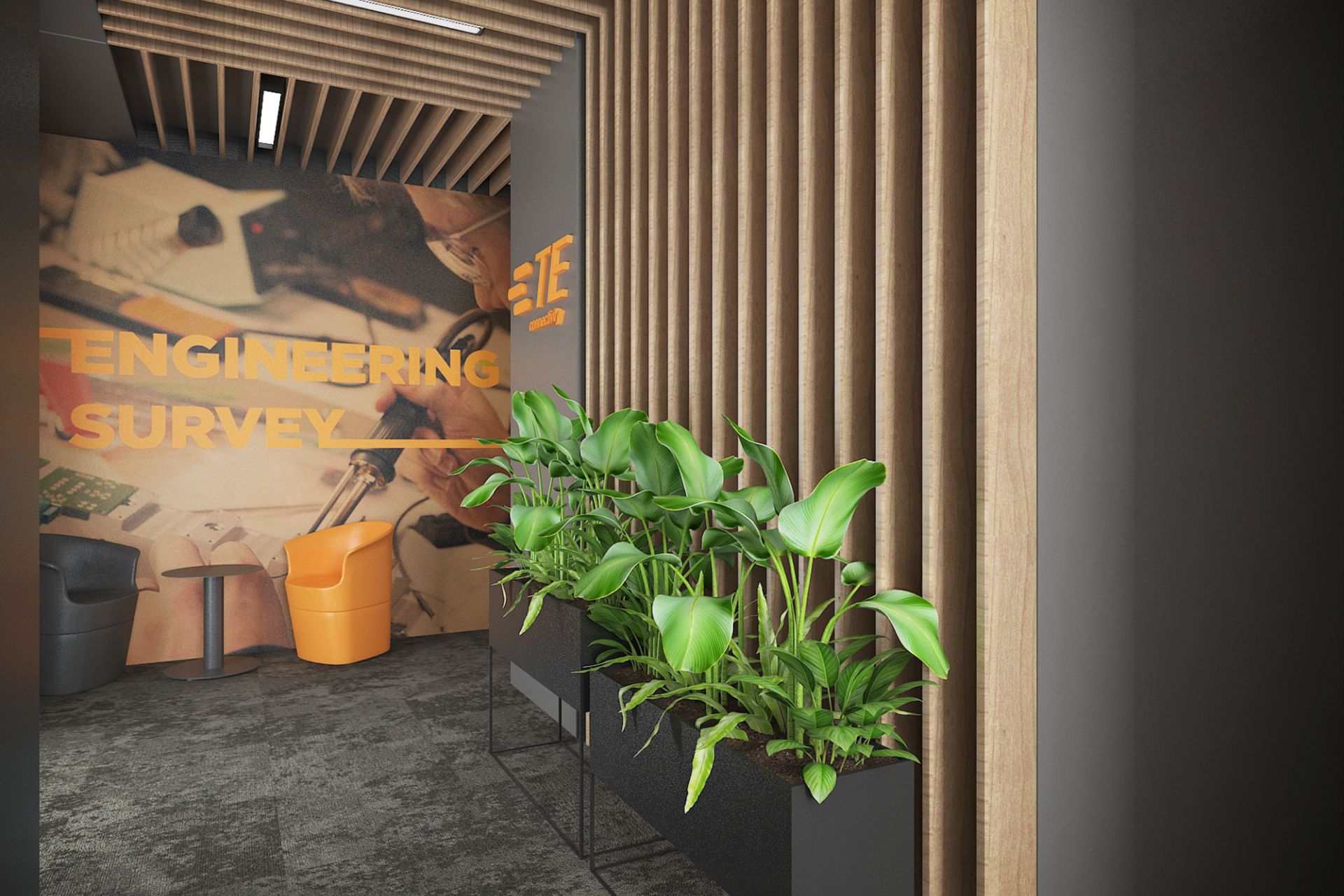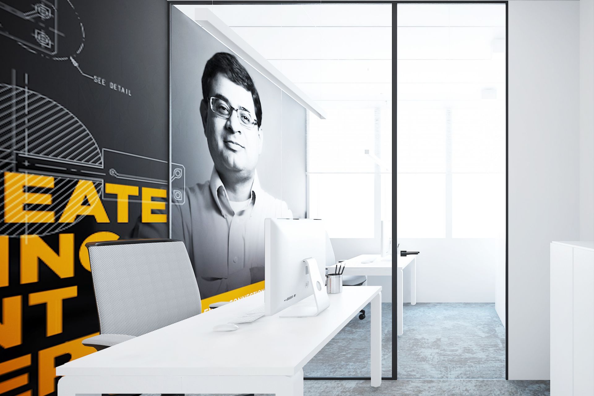 Projekt przestrzeni biurowej zarządu amerykańskiej firmy technologicznej współpracującej z wieloma branżami – motoryzacyjną, przemysłową, medyczną, lotniczą czy energetyczną.