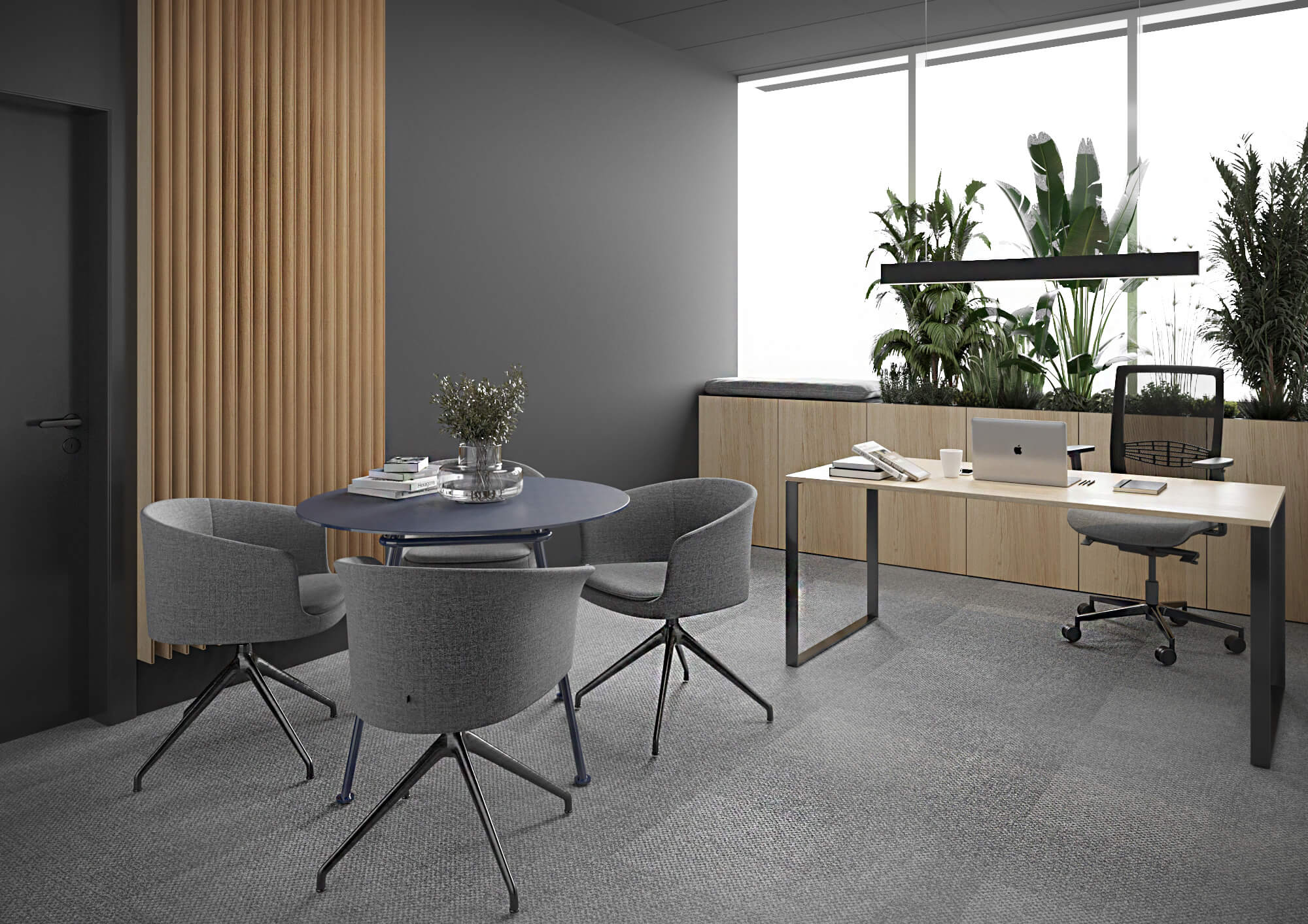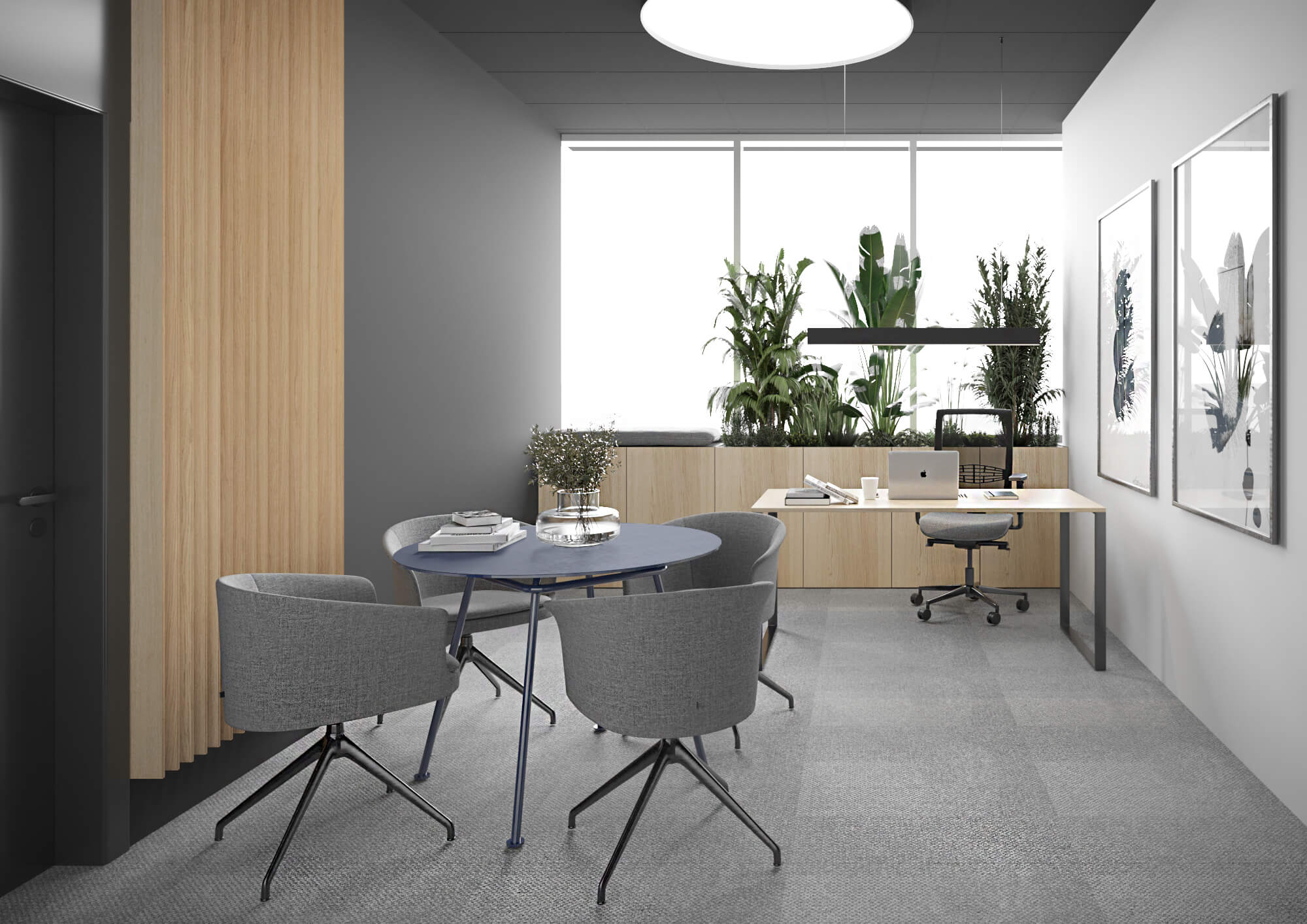 Projekt aranżacji wnętrz biurowych, który zakłada wykreowanie przyjaznej przestrzeni zarówno dla pracowników, jak i dla Klientów firmy. Kolorystyka, zastosowane materiały i faktury podkreślają pozytywny, międzynarodowy wizerunek firmy.