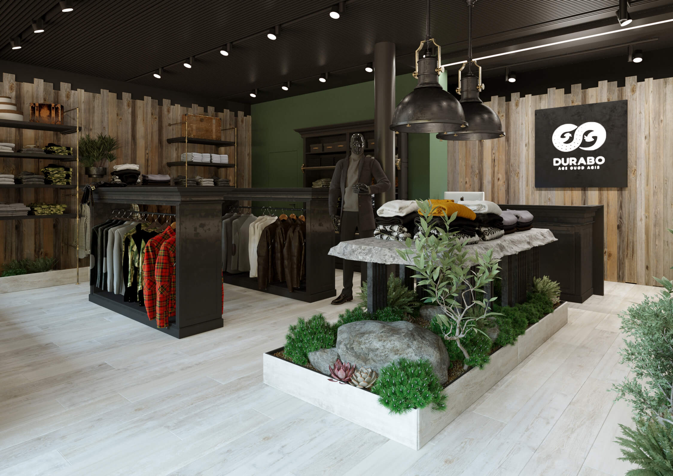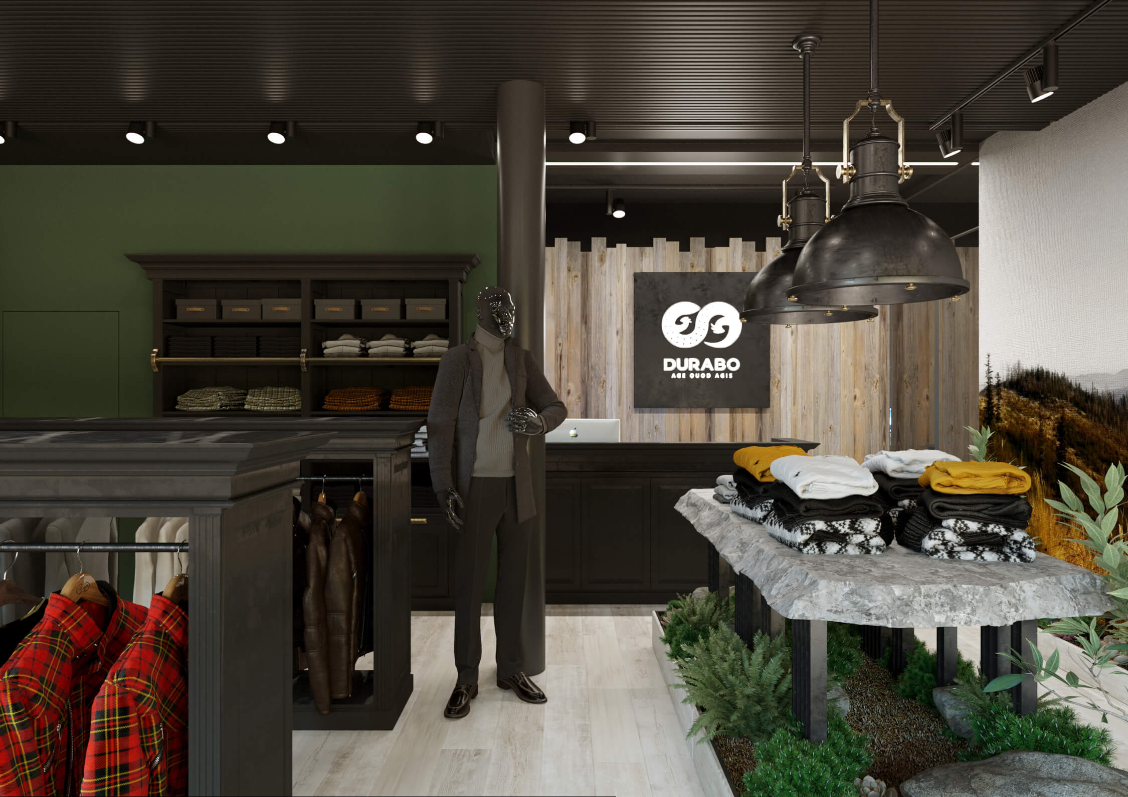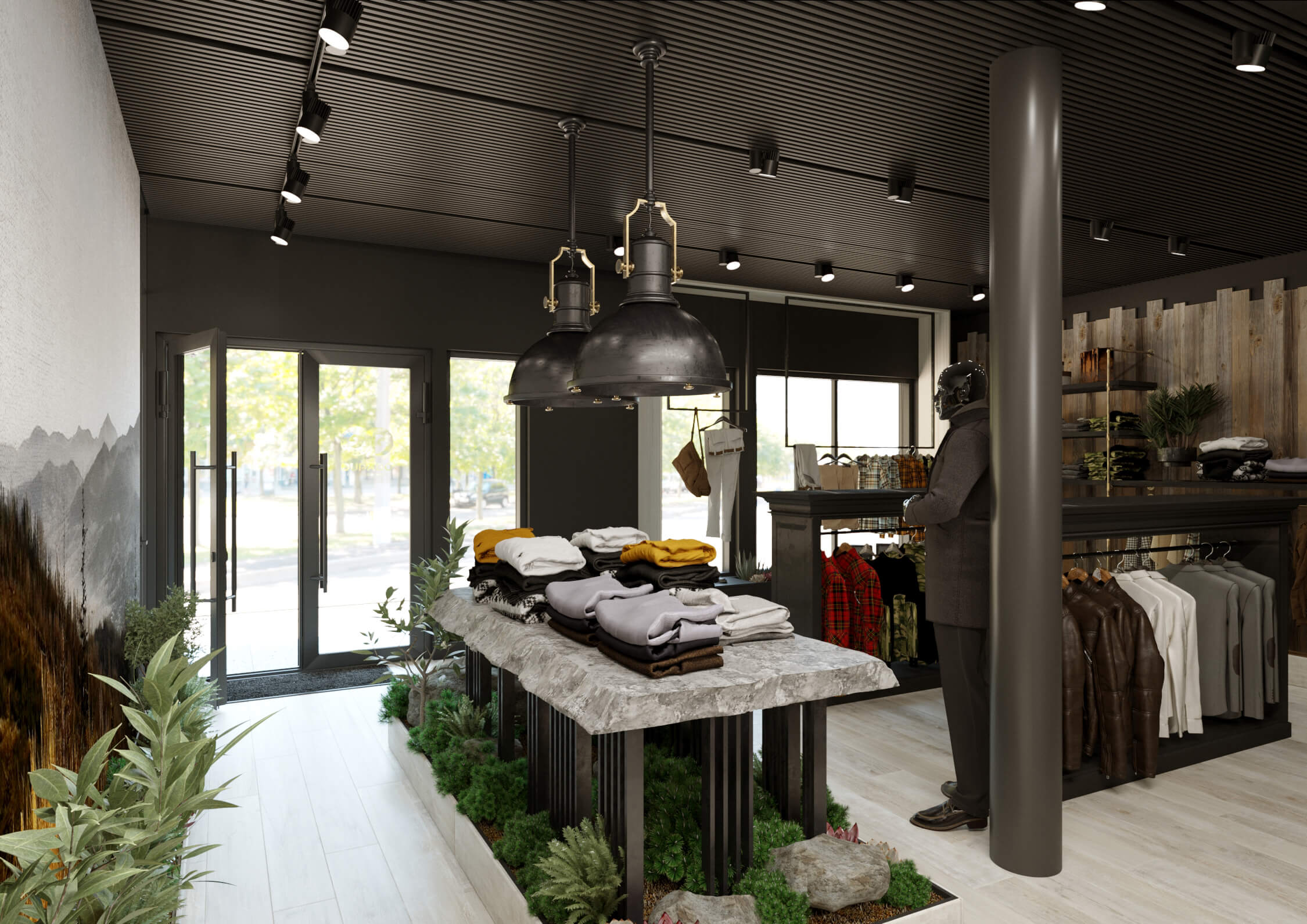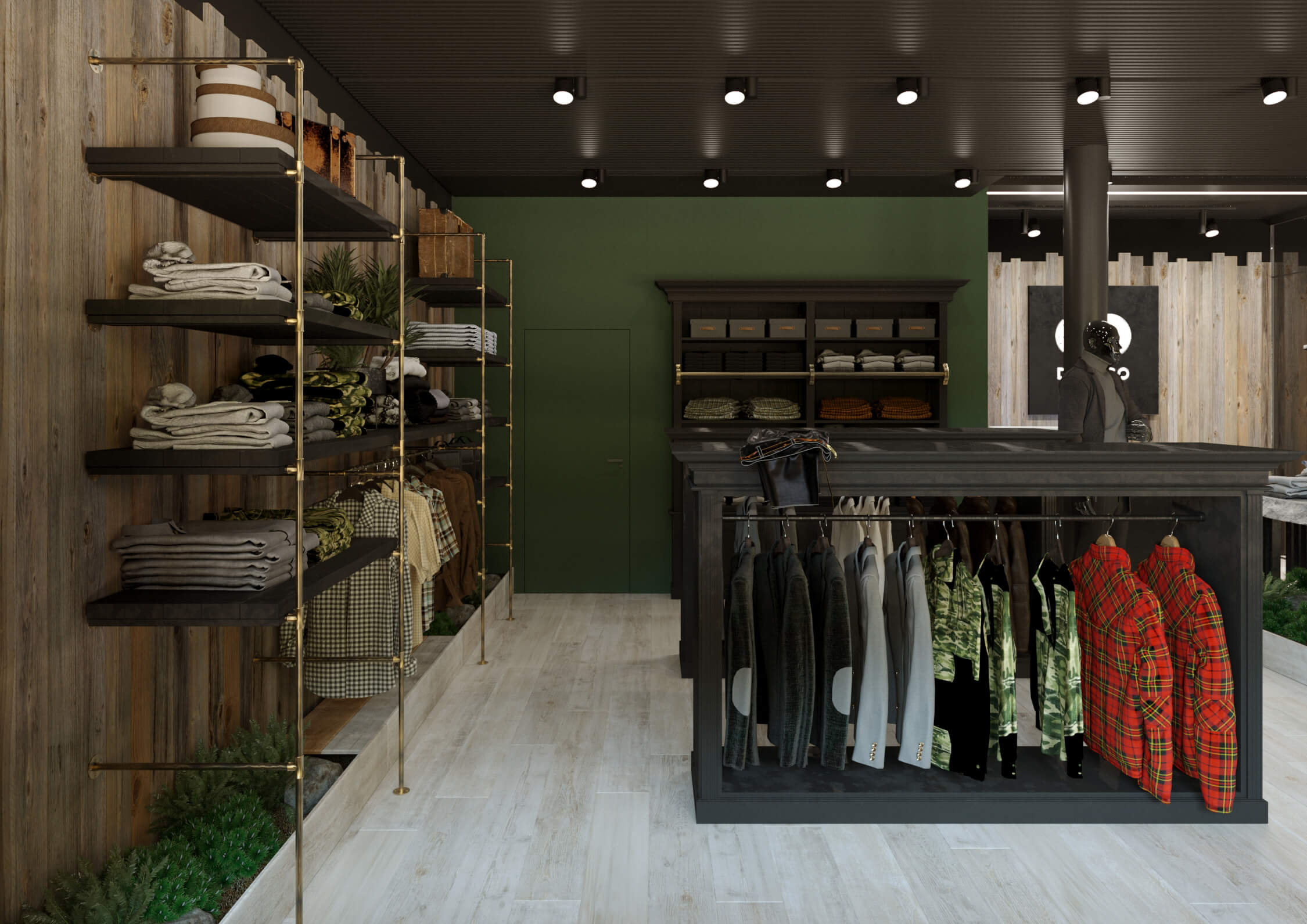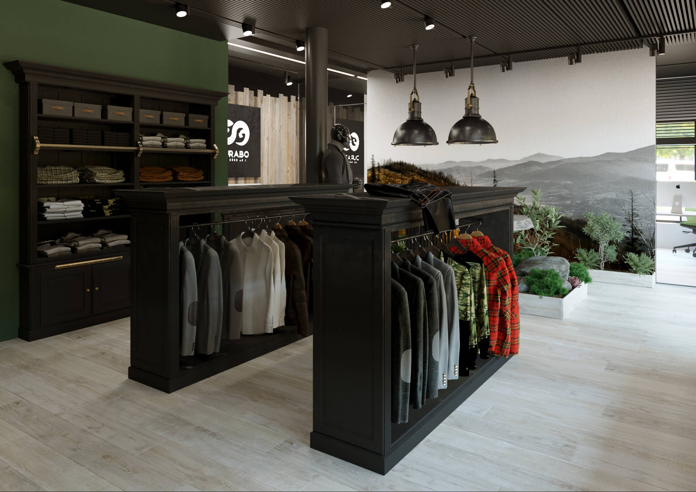 Projekt flagowego showroomu nowopowstającej marki odzieży outdoorowej z Torunia.